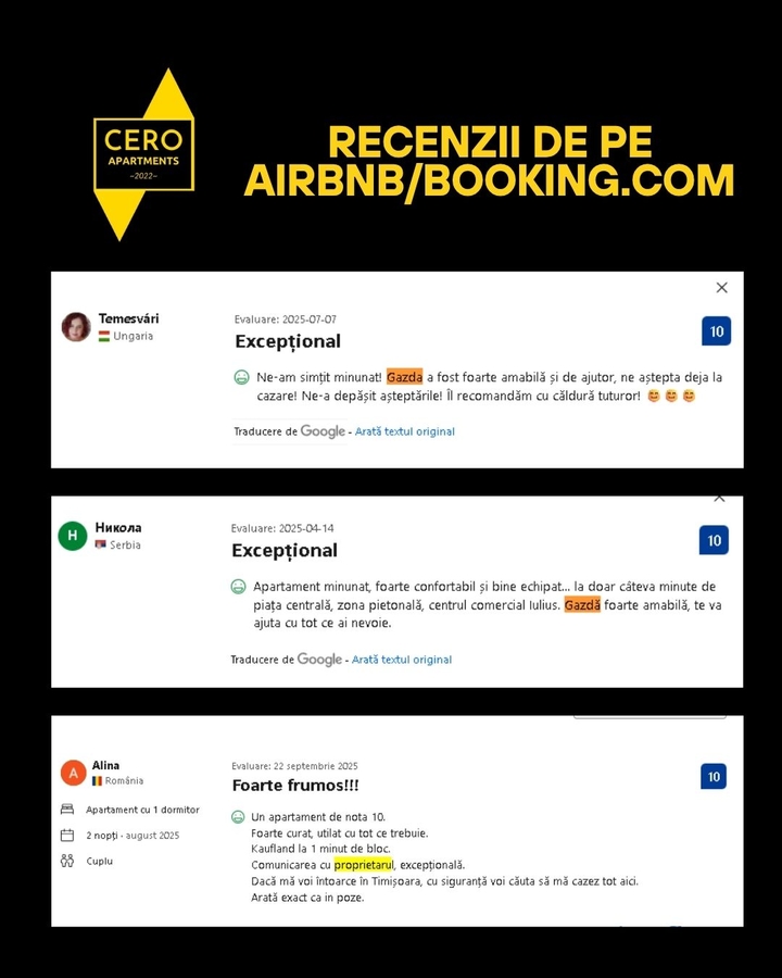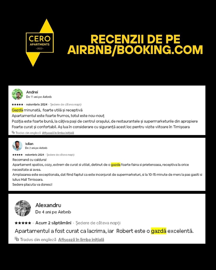 Prin imaginile atasate, se poate observa ca orice client a fost multumit de cat de bine s-au simtit la apartamentele gestionate.