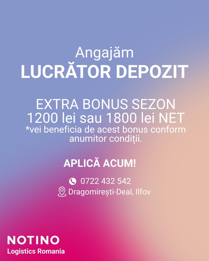 Lucrator depozit (Dragomiresti-Deal, IF) salariu intre 3500-4900 lei