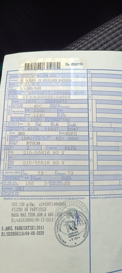 Vand autoturism marca Peugeot 5008, an de fabricatie 2011, al doilea proprietar in Romania. Detin autoturismul din ianuarie 2021. Autoturismul are 171000 de kilometri, sens in care pun in anunt copie dupa cartea de identitate a autoturismului pentru a fi verificati. Autoturism de familie cu toate schimburile efectuate la zi. Accept orice test in orice service autorizat. Ca si dotari : dublu climatronic, computer de bord, carlig de remorcare, motor 1.6 HDi 110 CP 6+1 trepte, Euro 5, Airbag-uri,abs,esp, Volan piele, Comenzi volan, Computer bord, Pilot automat, Frana de mana electrica, Scaune fata reglabile, Cotiere scaune fata, Masute scaune spate, Senzori ploaie, Senzori lumini, Oglinzi electrice incalzite, 4 geamuri electrice, Inchidere centralizata, Jante aliaj originale, 2 Chei.