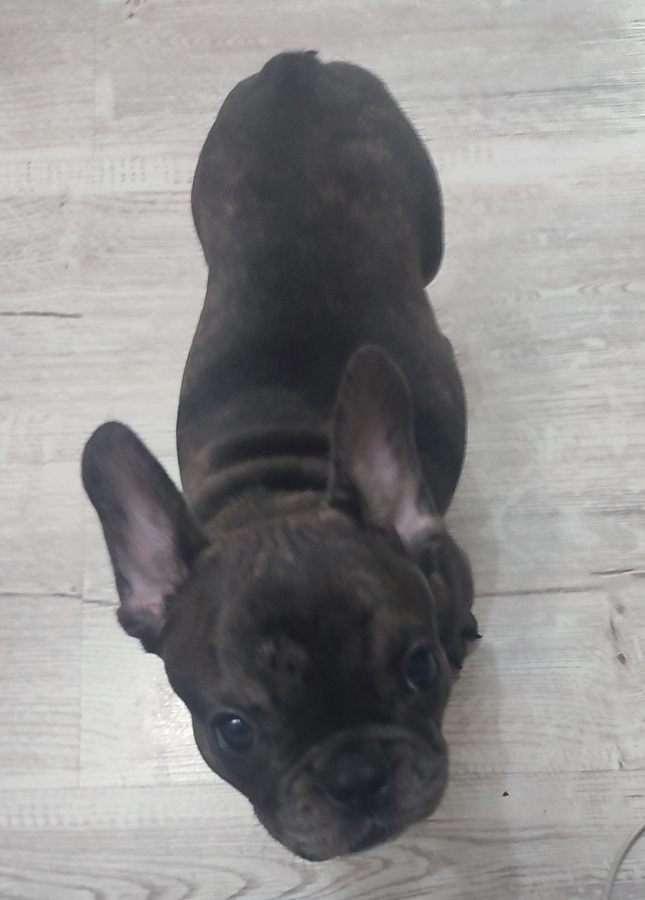 Buldog francez (fetita) 2 luni. Carnet de sanatate. Vaccinuri facute 2 plus deparazitare. Ramas de facut ultimul vaccin. Fara microcip Foarte curata, face necesitatile la pled in baie. Motivul, nu este timp pentru ia plecam dimineata si revenim seara acasa. Ofer tarc, patut, hranitoare, jucarii. Tel: zero 7 sase 3 zero 1 unu 1 unu 0.