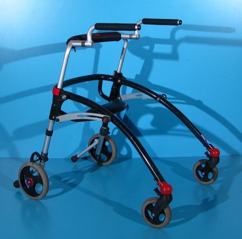 Acest rolator pentru copii sprijina utilizatorul din spate si promoveaza postura verticala in momentul in care sta in picioare si se deplaseaza.