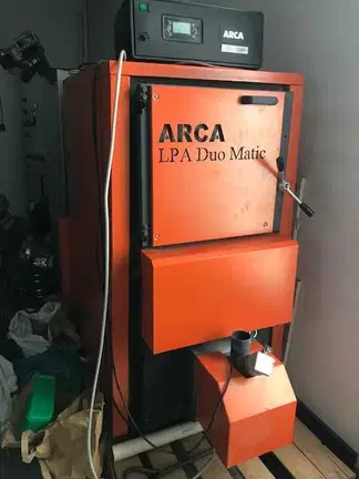 Inca in garantie, se prezinta impecabil „Centrala Arca LPA Duo Matic 45kw, mixta lemne peleti”