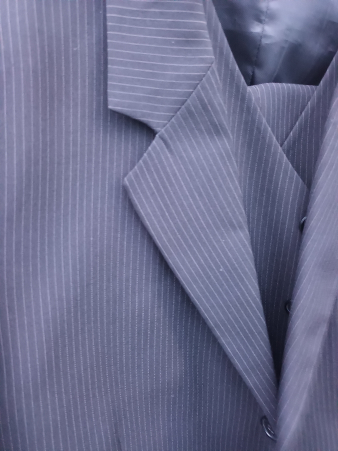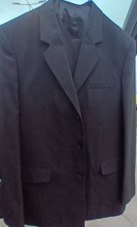 Costum marime 48, purtat de 3 ori, stare foarte buna, material lejer, fin, culoare neagra.