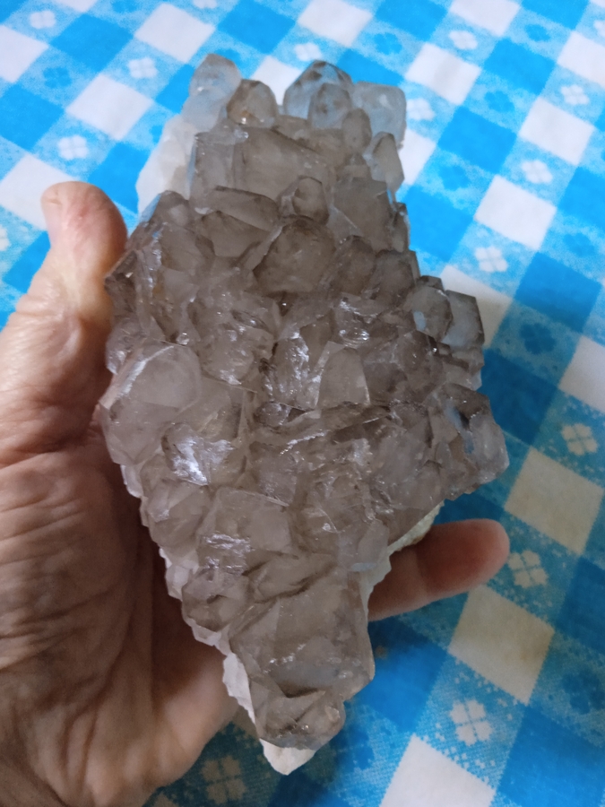10 specimene de cuart fumuriu cristalizat in diverse etape geologice in "solzi tip crocodil, cuart jacare portugues" piese rare, unele cu 2 varfuri sau cu "fantoma", Minas Gerais, Brazil, tot lotul aprox 7 kg = 250 euro sau per bucata 50-200 euro