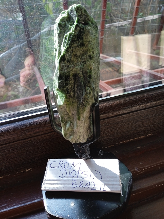Cristal rarisim crom diopsid verde, pe suport special, Minas Gerais, Brazil = 500 euro