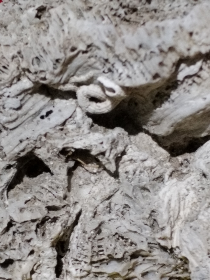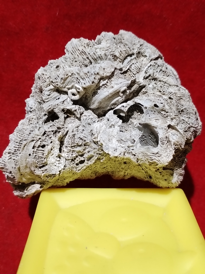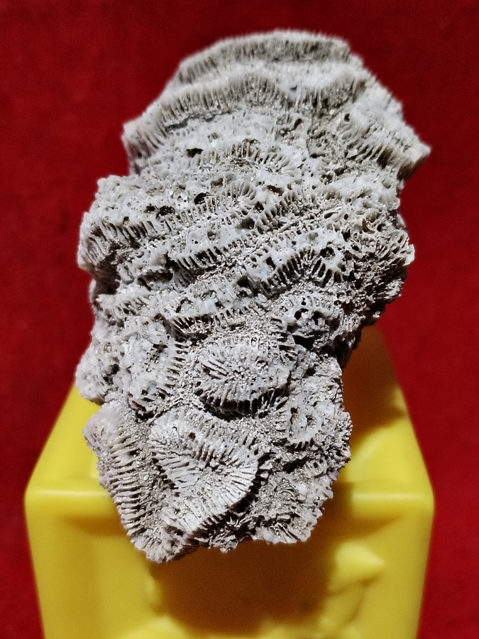 Prezinta structura tipica a coralului cu aspect de creier uman, dar si urme secundare de organisme boratoare (gauri de viermi), ceea ce o face deosebita si rara din punct de vedere paleontologic.