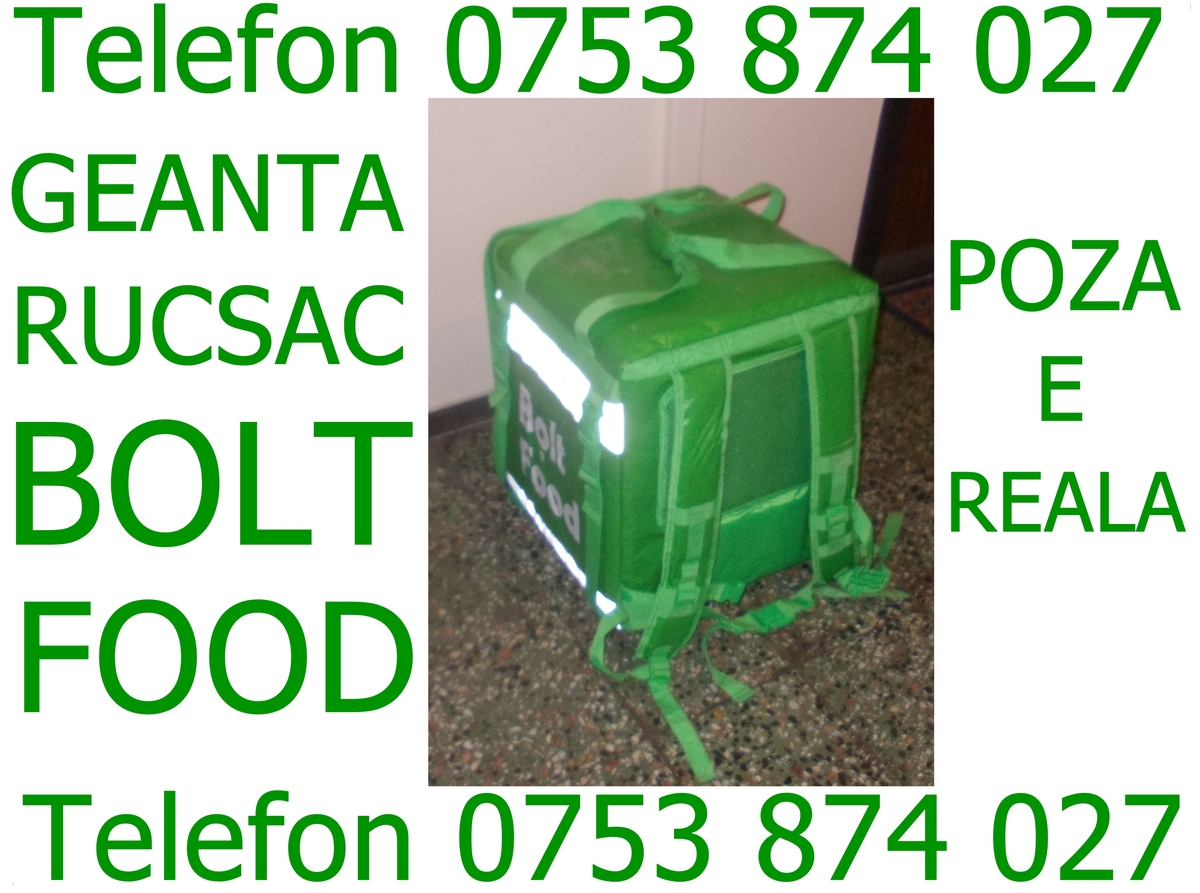 Geanta termica mare, cutie lada frigorifica, ruxac, ghiozdan, rucsacul izoterm firma Bolt Food, util si pentru Glovo, Tazz, Wolt Volt Uolt, Uber Eats, Bringo, Food Panda, Taz, pentru livrator rider distribuitor curier livrare transport depozitare delivery curierat distributie, depozitat si transportat produse alimentare si bauturi apa plata, apa minerala, suc.