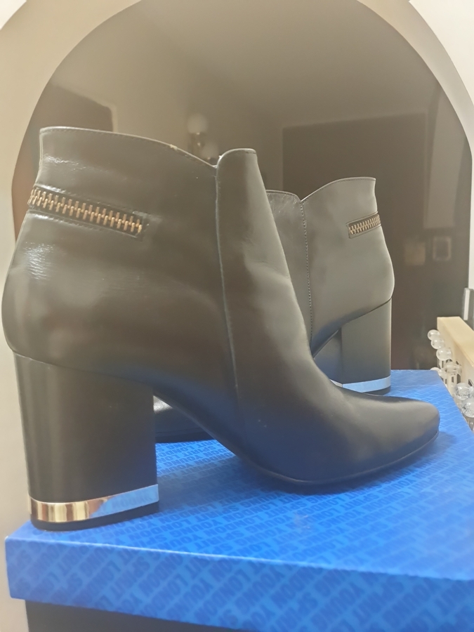 Culoare negru, fermoar lateral si glezna, marimea 39.Produs nou (nu au fost folositi).