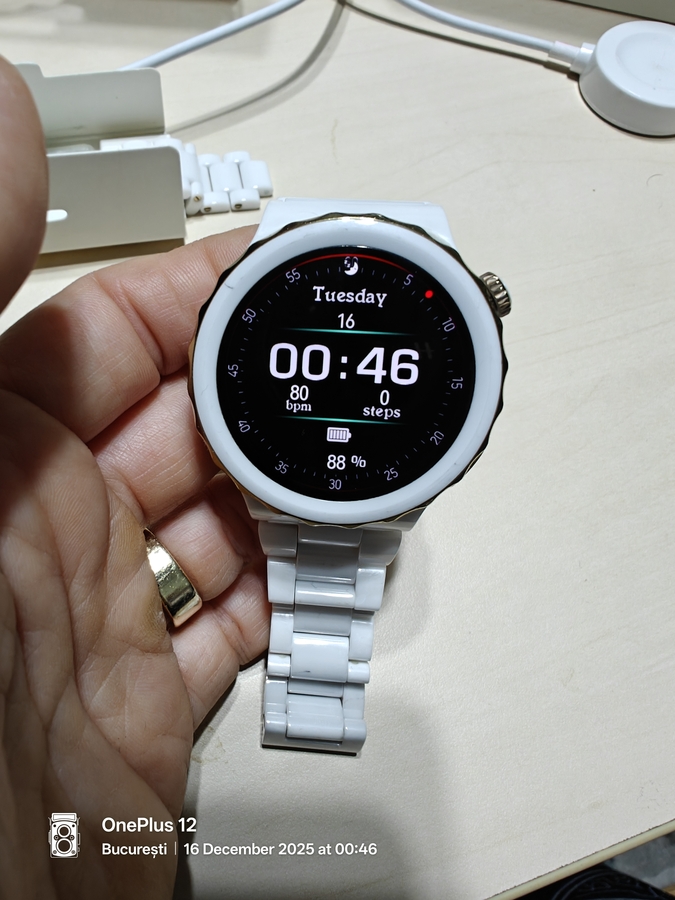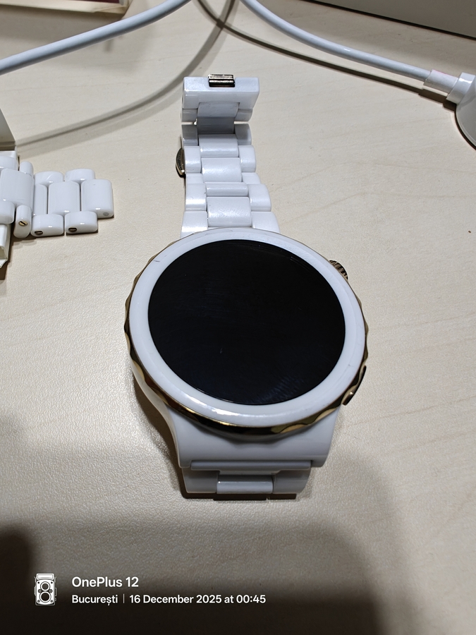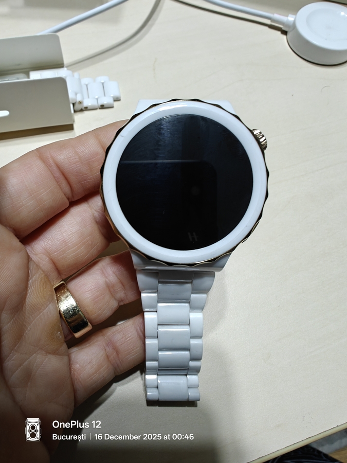 Vand Huawei Watch GT 3 Pro Ceramic, purtat, in stare buna, cu toate accesoriile. Functioneaza impecabil, fara defecte. Aspect elegant, material ceramic premium. Predare personala. Pret: 700 lei, usor negociabil,