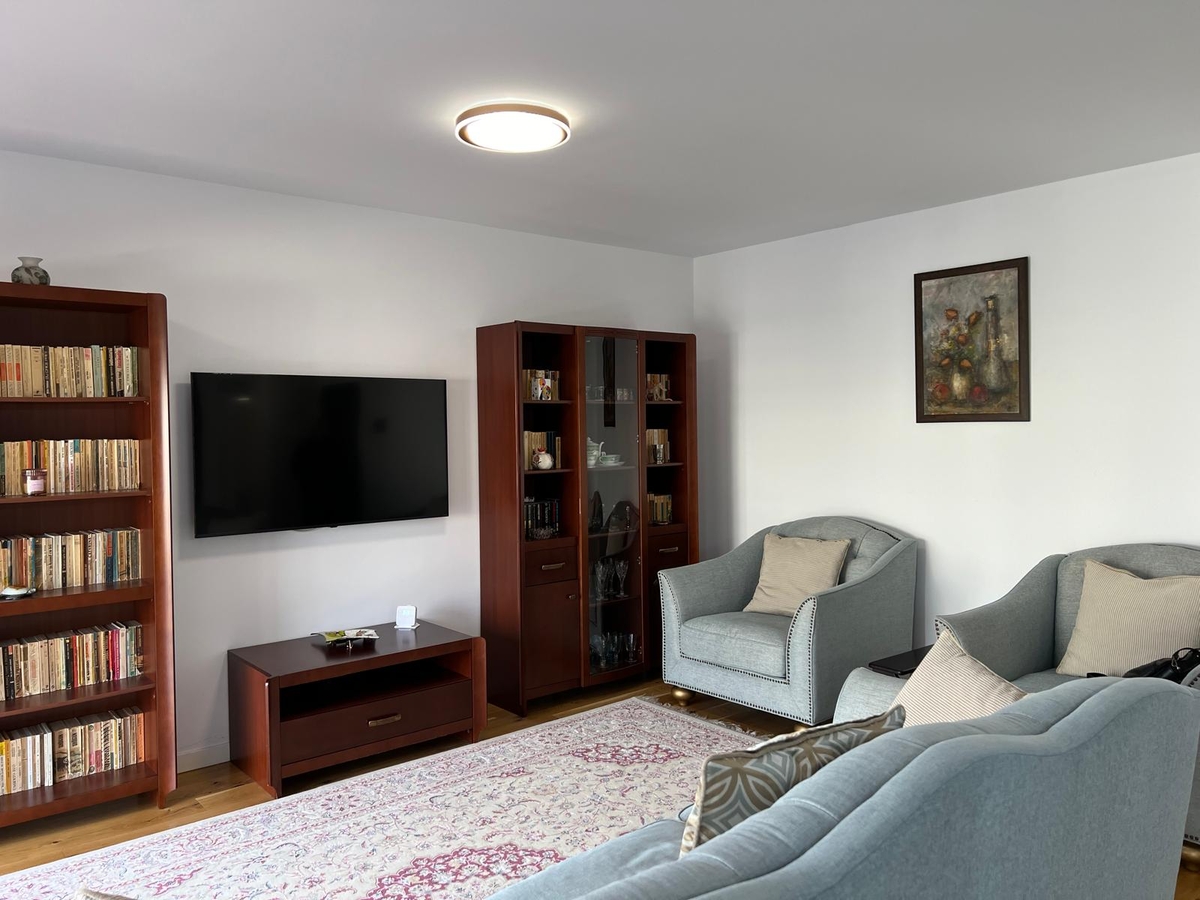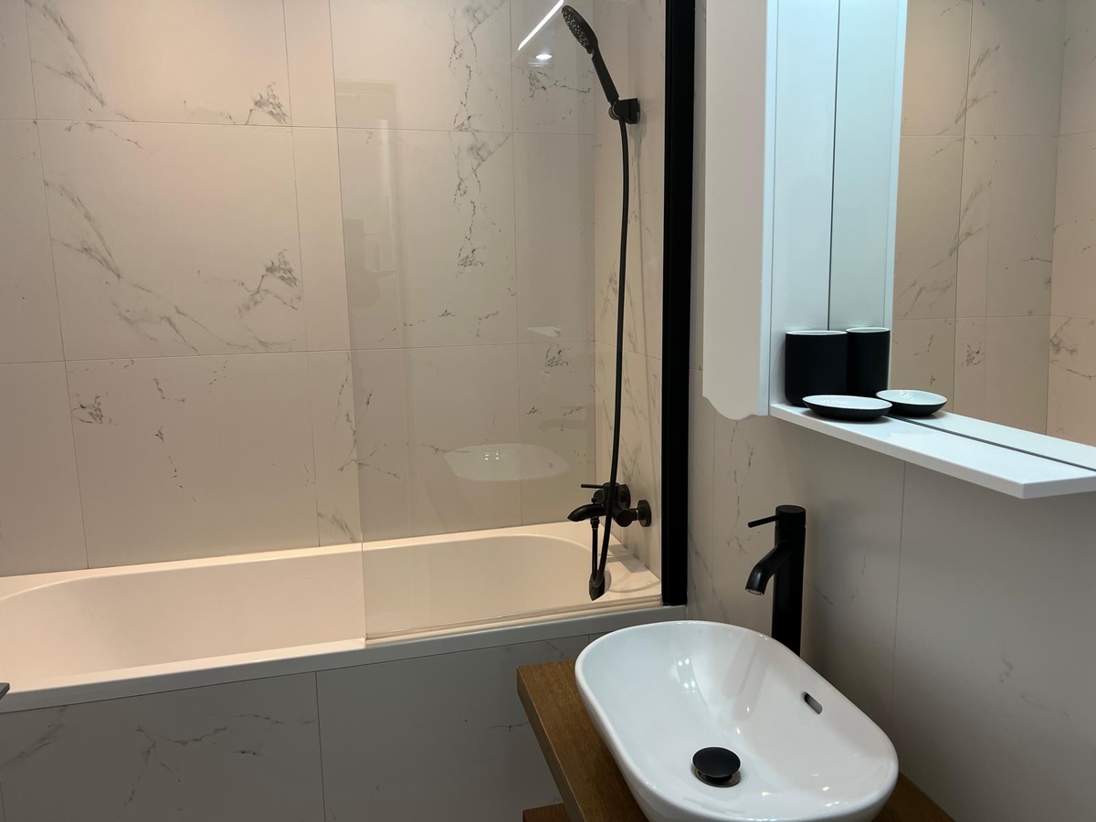Gresie, faianta, parchet, termopan, aer conditionat.Baie cu cada, usa la intrare blindata, ferestre mari, storuri.