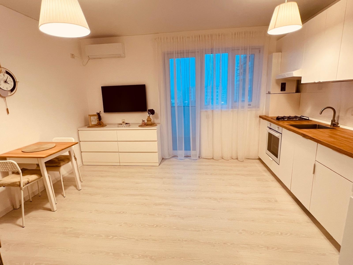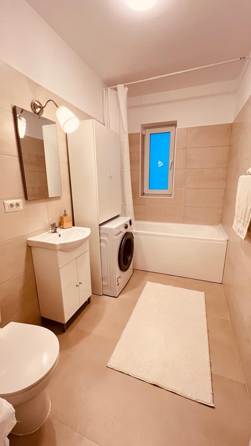 • Bucatarie complet echipata: frigider, plita , cuptor , masina de spalat vase/rufe