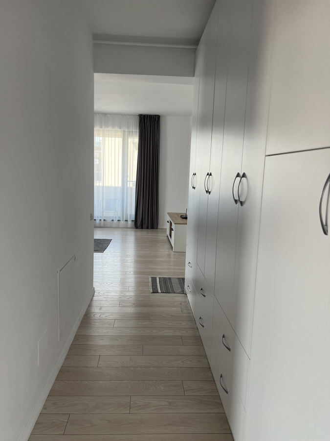 Geamurile mari si inalte inunda spatiul cu lumina naturala, completand finisajele premium si compartimentarea inteligenta a apartamentului. Spatii generoase de depozitare integrate.