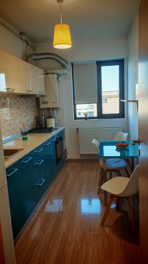 Oferim spre inchiriere un apartament de 2 camere decomandat, modern in zona Chitila vis-a-vis de Carrefour Colosseum, etaj 5/7, cu o suprafata de 59 mp utili, vedere mixta, finisat modern, parchet, gresie, faianta, termopan, usa metalica, mobilat si utilat, aer conditionat, centrala proprie, aproape de mijloace de transport in fata blocului, metrou la 20 de minute, magazine, 1+1 luna