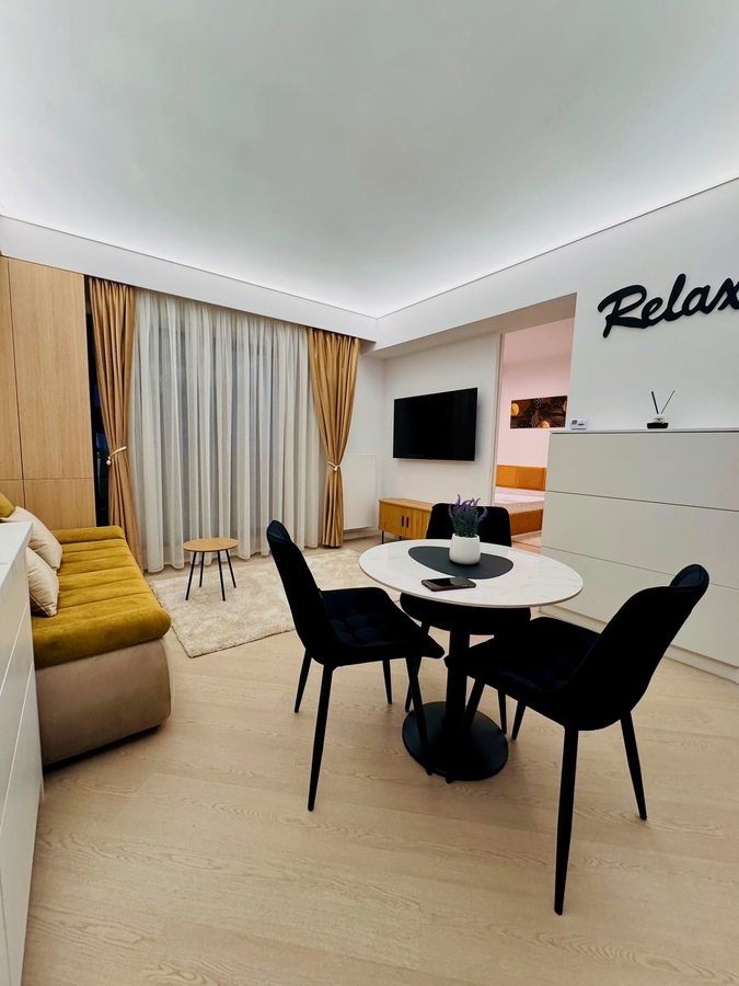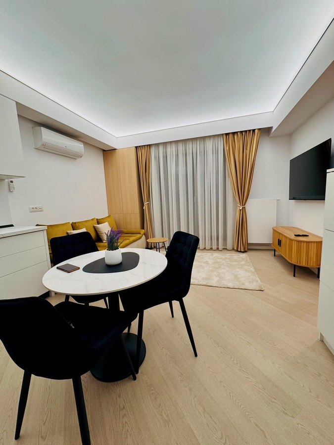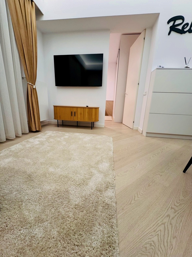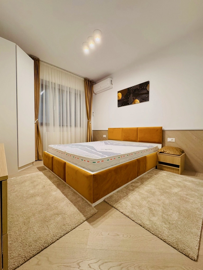 * Confort complet — mobilat modern si utilat integral: centrala proprie de apartament, 2 aparate de aer conditionat, masina de spalat, plita pe gaz, cuptor electric, combina frigorifica, smart TV si mobilier nou.