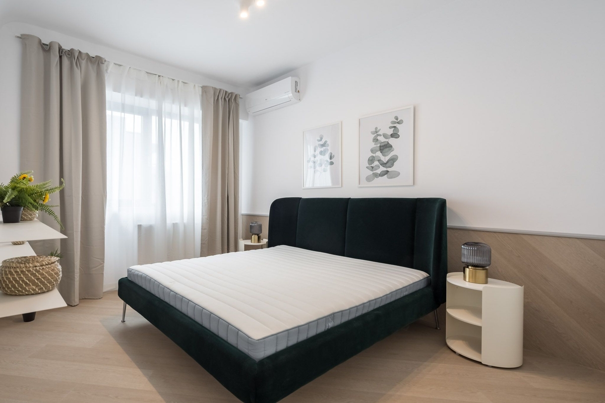 Avem placerea sa va prezentam, cu 0% comision pentru chirias, un apartament de 2 camere superb complet mobilat si utilat, dispunand de loc de parcare subteran (ce se poate inchiria separat la 70euro/ lunar) si de o pozitie exceptionala in nordul capitalei, la doar 5 min de Promenada Mall, in complexul rezidential Cortina North by Eden Development, complex inchis ce dispune de paza si supraveghere continua.
