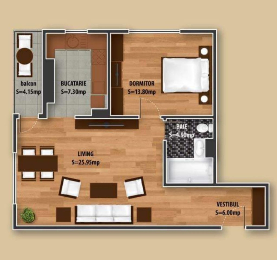 Optiuni interior: Apometre Centrala Repartitoare Aragaz Frigider Liber Televizor Aer conditionat Balcon Masina de spalat Termopan Usa metalica