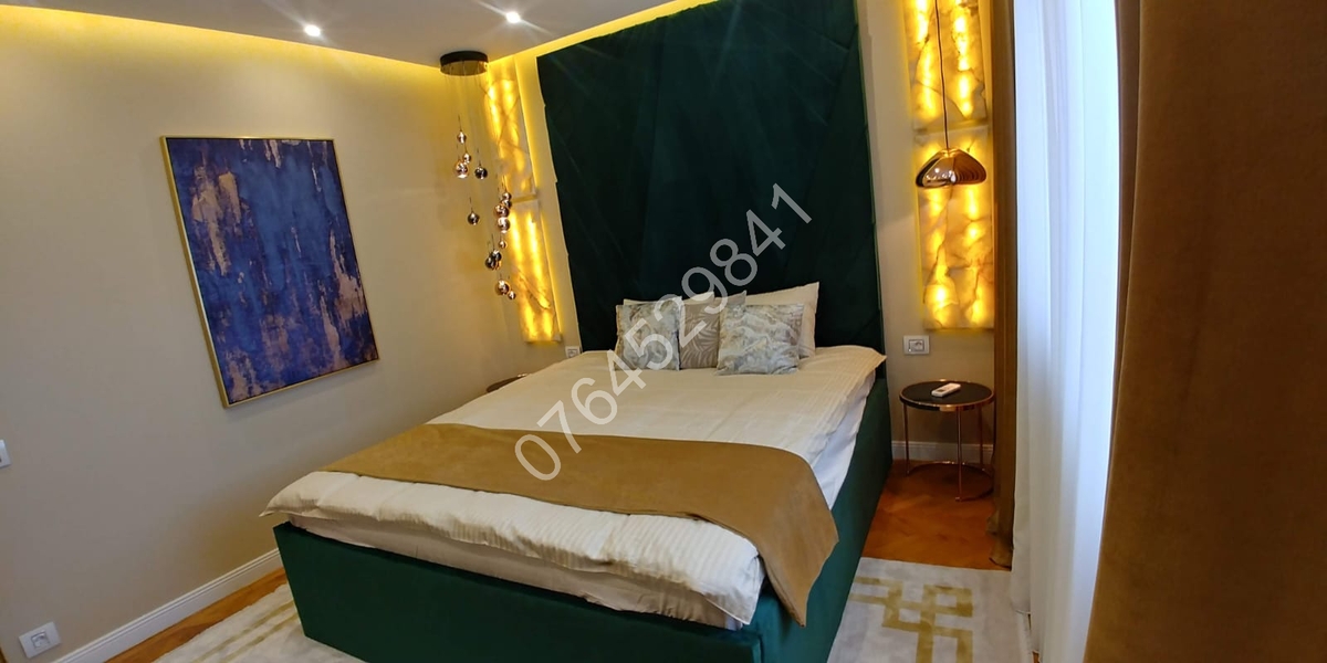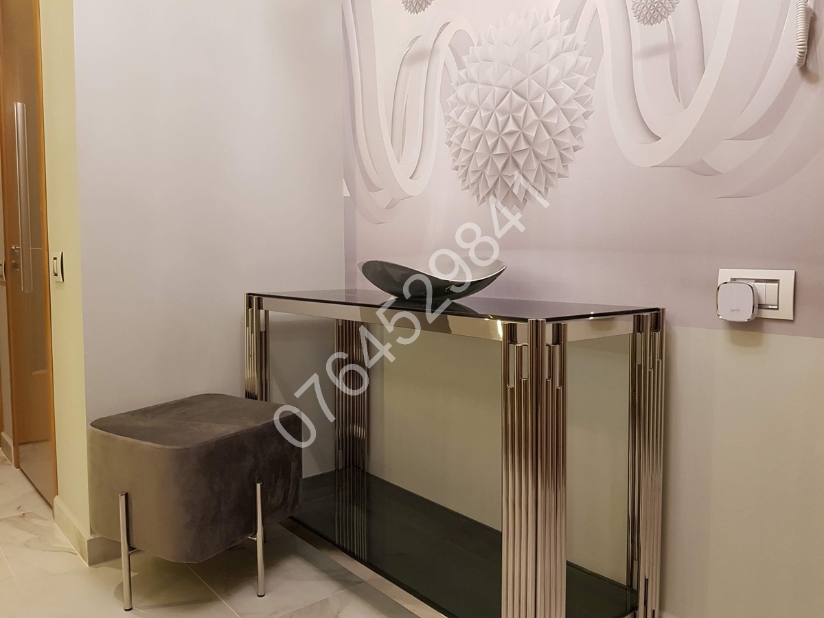 Balcon inchis in termopan,2 aparate de aer conditionat cu inverter, 3 televizoare smart,canapea extensibila+zona dining in living, pat matrimonial (180/200)+dressing generos in dormitor, dressing generos pe hol,spatii depozitare,draperii somptuoase din catifea, perdele din matase, covoare Pierre Cardin,plita pe gaz+cuptor electric+hota incorporate, espressor cafea,cuptor microunde,aspirator,combina frigorifica,masina de spalat rufe cu uscator,masa calcat+masina calcat,vesela si tacamuri.