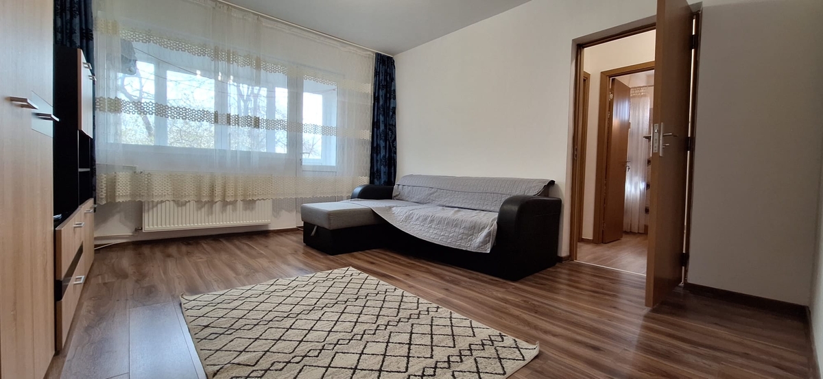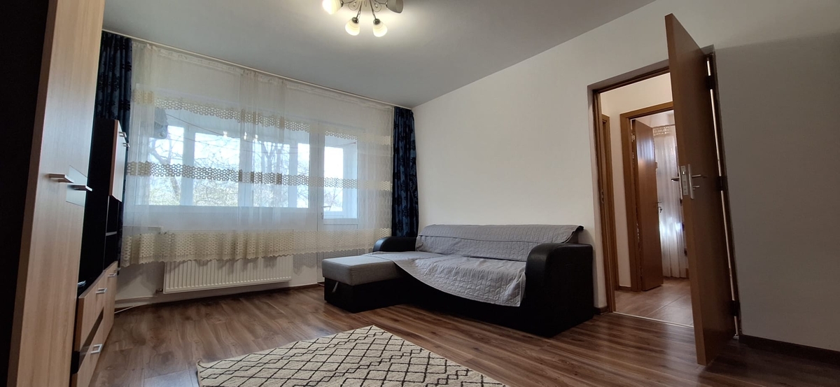 vis-a-vis de mall Plaza, 2 cam, et 1/10, cf 1, decomandat, circular, 52 mp cu balcon, bloc semistradal, se inchiriaza complet mobilat si utilat, amenajat modern, cu toate imbunatatirile, g, f, p, t, um, aer conditionat, usi de interior schimbate. Pat matrimonial in dormitor, canapea extensibila in living, aragaz, frigider, tv, masina de spalat rufe. Apartamentul este foarte bine intretinut, igienizat si se cauta persoane serioase pentru o inchiriere pe termen lung. Exista multiple facilitati in zona, mall Plaza, tramvai 41, gura metrou in apropiere. Nu se accepta animale de companie. Chiria 1+1+comisionul agentiei!