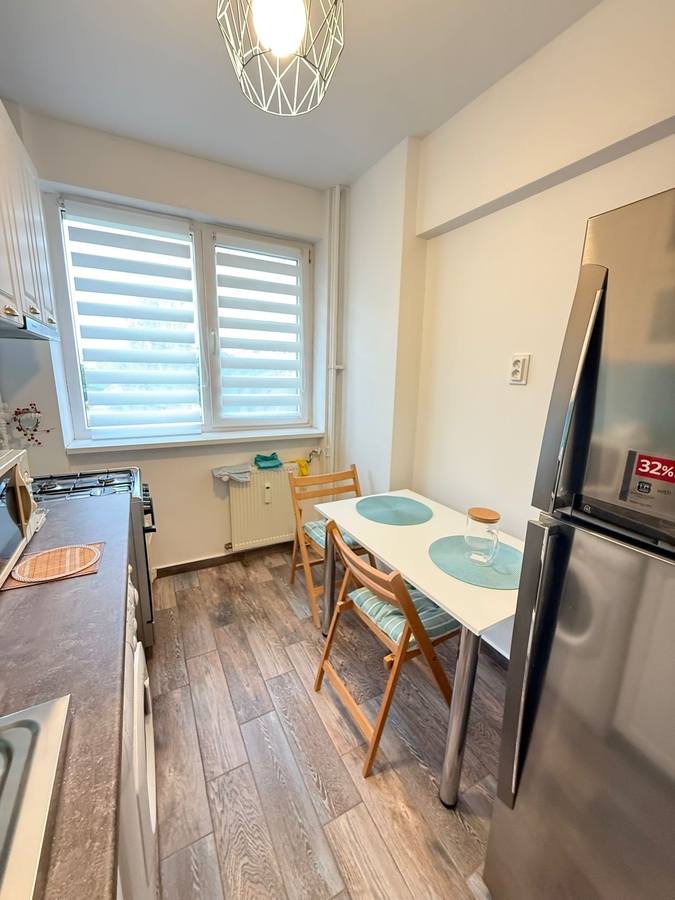 Prima inchiriere, bloc reabilitat, 54 mp, balcon mare, mobilat modern (electrocasnice noi), curat, etaj 7/9, amenajat cu termopan, parchet, aer conditionat (2), situat langa metrou, parc, linia 41.