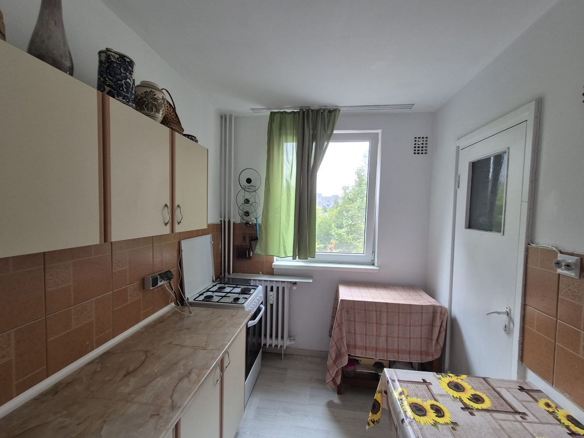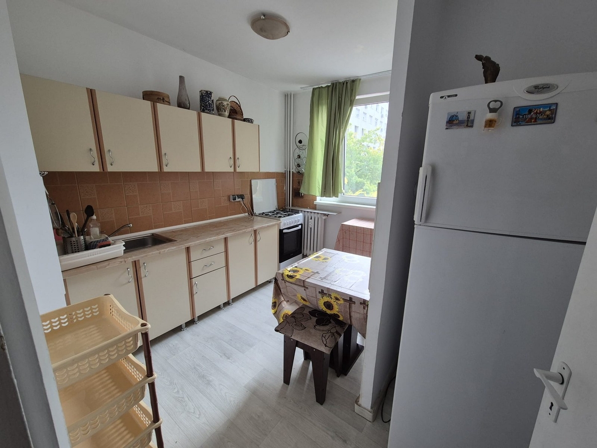 Apartamentul este confort 1, decomandat, mobilat si utilat, curat, la etajul 3 din 4, avand o suprafata de 50 mp, intr-un bloc reabilitat termic, constructie din 1972 fara balcon si are parchet, gresie, faianta, termopan.