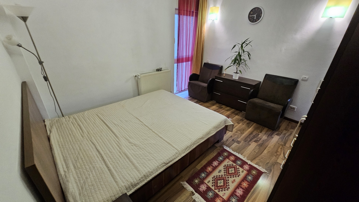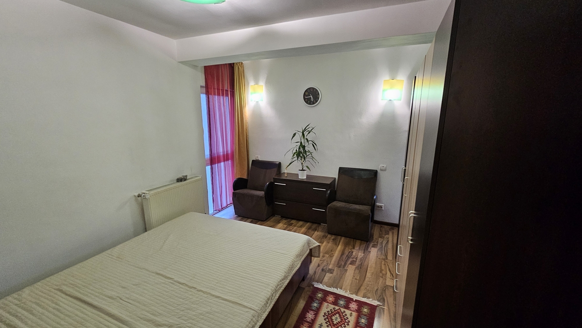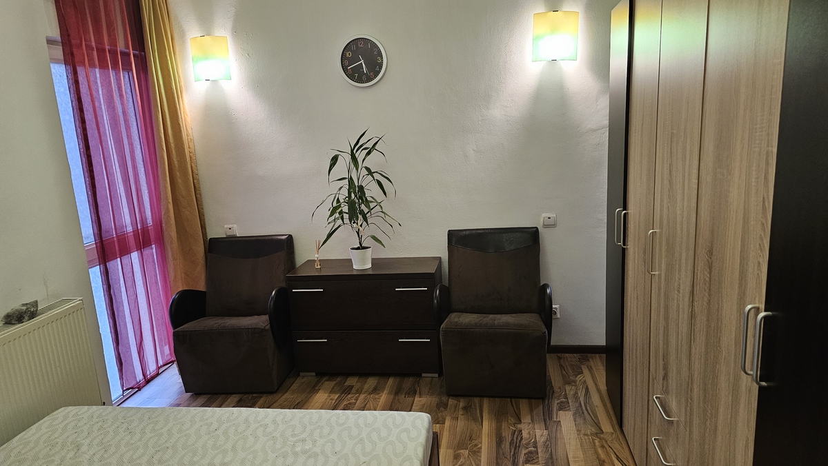 Proprietari fiind pornim la o noua provocare si ne dorim un prieten cu suflet mare si dornic de un camin cald si primitor situat intr-o zona plina de liniste si de verdeata. Este vorba de un apartament cochet amplasat la et 1 al unui imobil S+P+2+M, din anul 2008, complet mobilat si utilat, masina de spalat, AC, balc inchis si bucatarie complet noua atat ca mobila cat si ca aparatura.