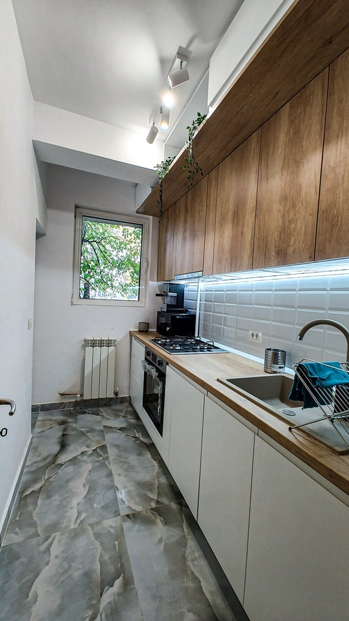 Apartamentul de 50 de m2 este situat la etajul 2 din 3 al unui bloc reabilitat termic. Renovat full 2025, gresie, parchet, sanitare de cea mai buna calitate. Mobilat, gata de mutat.