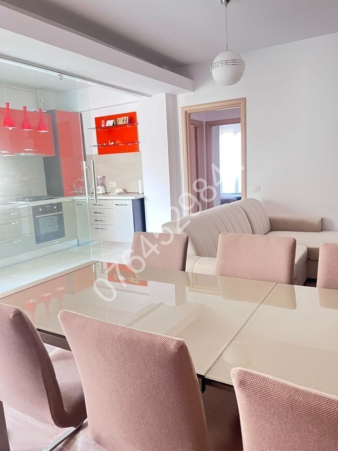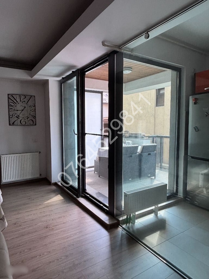 Balcon deschis tip terasa, centrala termica (pe gaz) de apartament, televizor smart, geamuri panoramice, canapea extensibila tip coltar in living, pat matrimonial+ dressing generos in dormitor,spatii depozitare, plita inductie+ cuptor electric+ hota+ combina frigorifica incorporate, masina de spalat rufe, la cerere se poate monta si un aparat de aer conditionat.