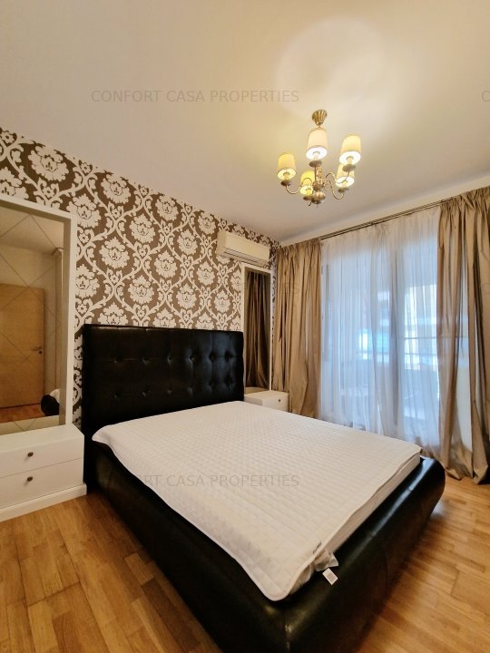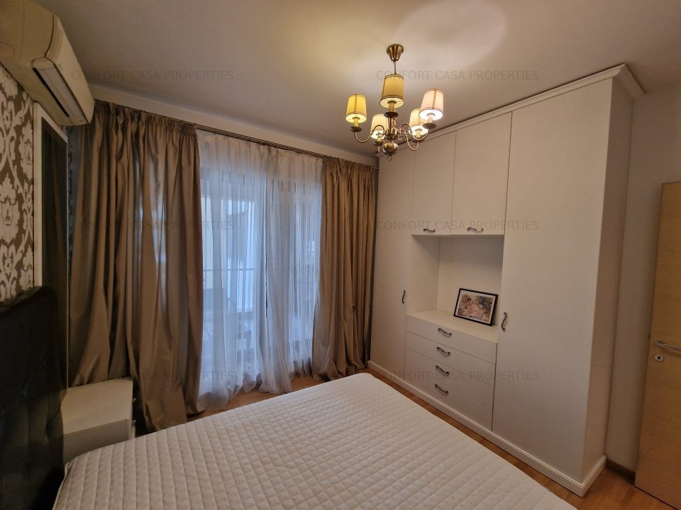 Herastrau - Soseaua Nordului - Clubul Francez - Apartament 2 camere - loc parcare subteran inclus in pret - bloc nou, centrala termica, aer conditionat Daikin, terasa spatioasa, mobilat si utilat modern, 2 dulapuri spatioase, canapea mobila Dalin, pat dublu piele, electrocasnice de calitate, masina spalat vase, masina spalat rufe, combina frigorifica, cuptor, plita, hota, vedere gradina blocului. Liber! Se poate viziona oricand!