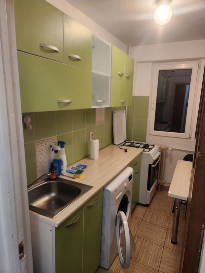 2 camere, decomandat, etaj1/10, mobilat si utilat (aragaz + frigider + masina de spalat + aer conditionat + cuptor microunde + tv), gresie + faianta + parchet + termopan + usa metal, bloc reabilitat,