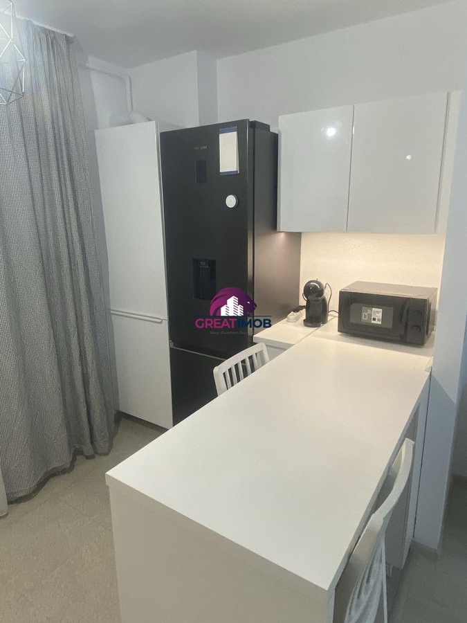 Apartamentul este proaspat zugravit, complet renovat si utilat complet cu mobila si cu toate electrocasnice noi ( 2 TV-uri smart , combina frigorifica , 2 aere conditionate , aragaz cu plita si cuptor pe gaz , cuptor microunde, espressor cafea ,pat matrimonial , aflandu-se la prima inchiriere !