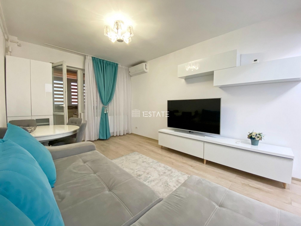 - livingul dispune de canapea extensibila, masa living cu 4 scaune, SMART TV Philips, Aer conditionat LG 12000 BTU;