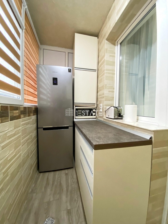 - bucataria a fost mutata pe balcon si este complet mobilata cu mobilier bucatarie din mdf - facut pe comanda si complet utilata, cu: frigider Samsung, aragaz Beko, cuptor Beko, Plita electrolux, cuptor cu microunde.