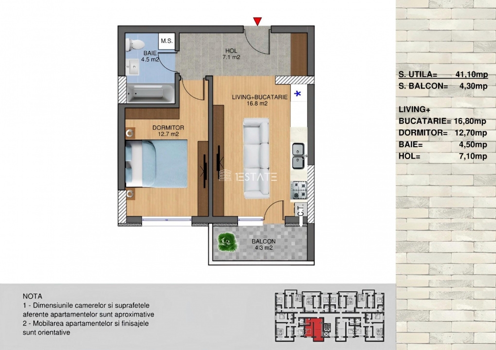 *Apartamentul se inchiriaza cu loc de parcare subteran.