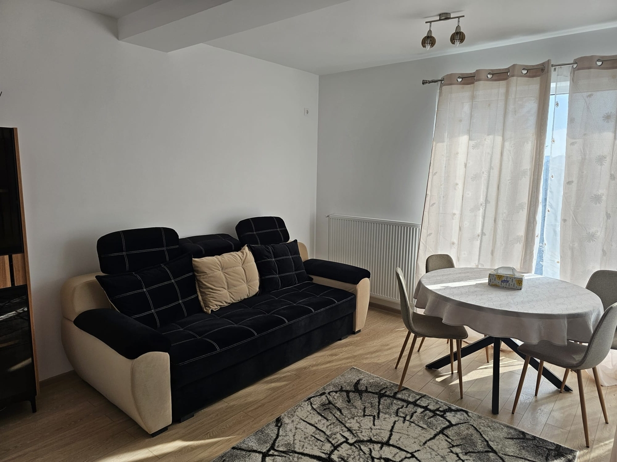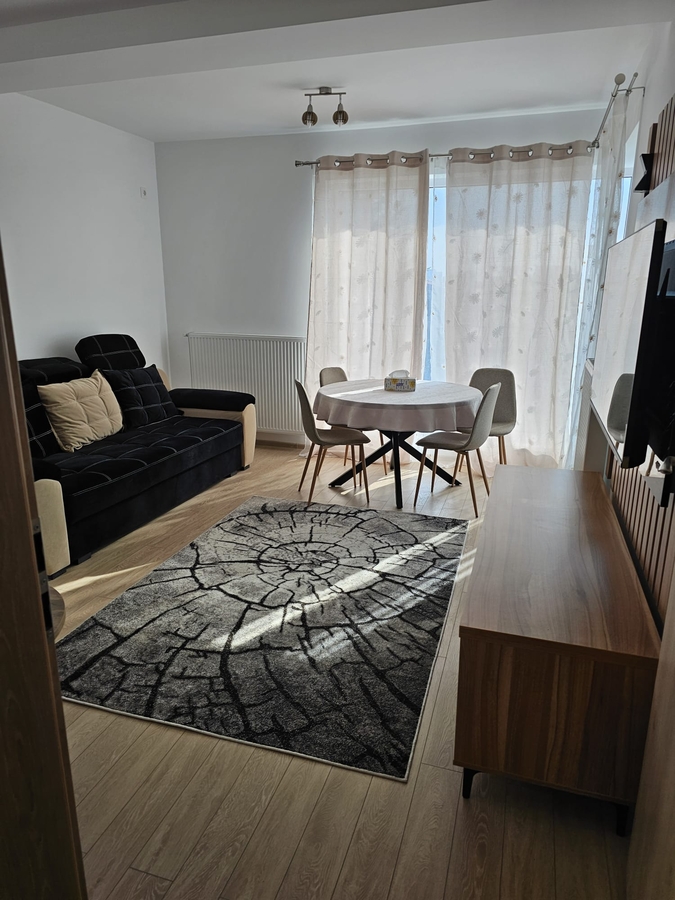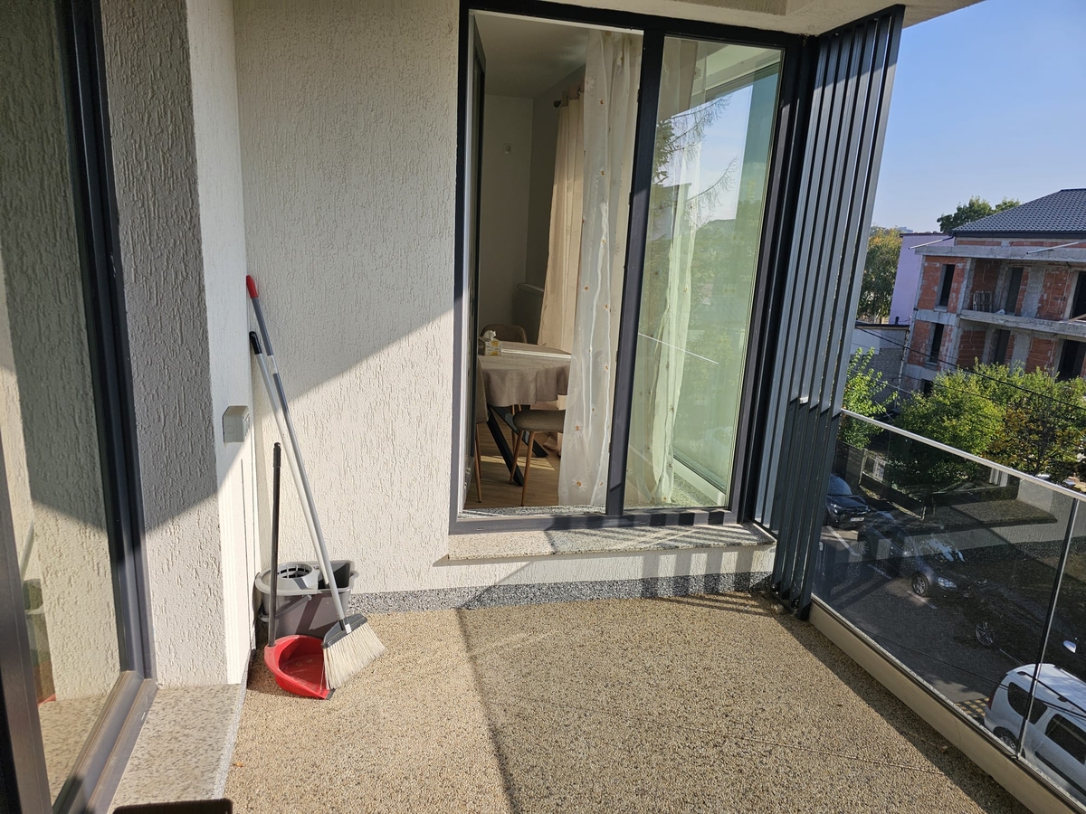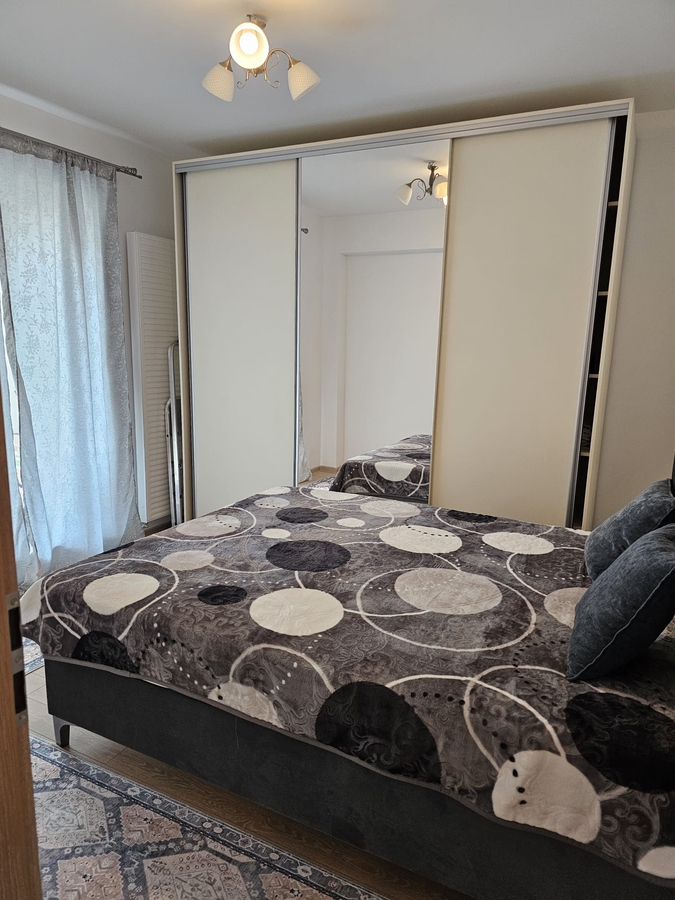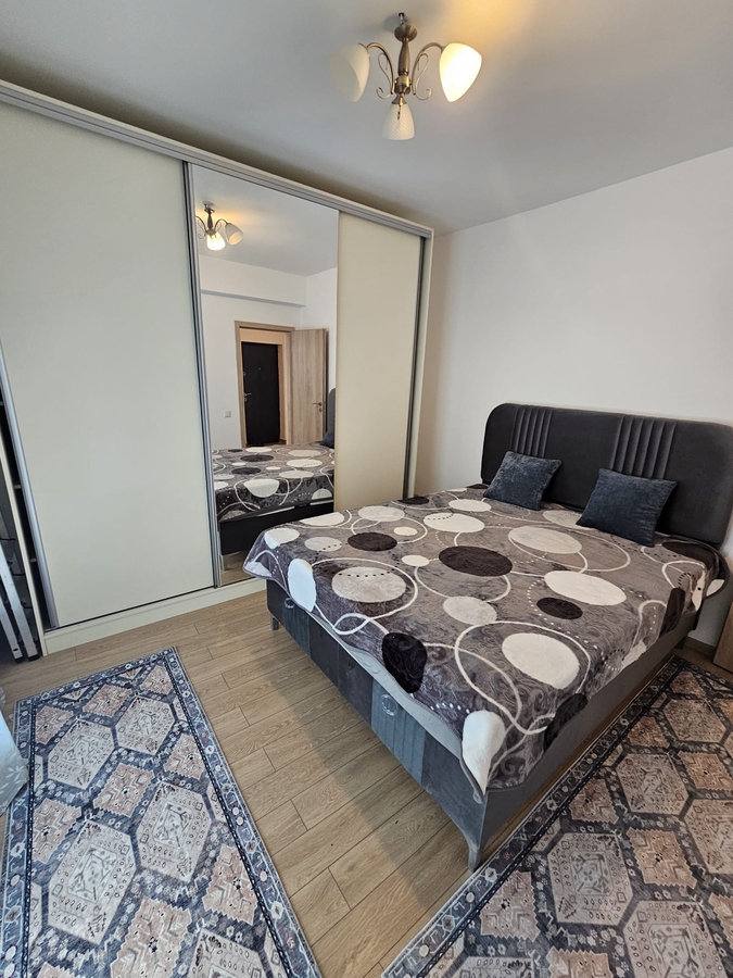 apartament nou intr-un bloc boutique la etajul 2 din P+2+M, an 2022, aproape de Parc Bazilescu la numai 5 minute de acesta, de metrou Parc Bazilescu si de piata 16 Februarie in suprafata de 54 mp incluzand si o terasa generoasa de 7 mp cu vedere la partea din fata a imobilului si spre locul de parcare privat inclus in pretul afisat al inchirierii. Apartamentul este complet mobilat si utilat, are TV Philips, centrala termica in condensare astfel incat consumul este redus, foarte convenabil de locuit, AC LG 12.000 BTU nou, dressing spatios pentru 2 persoane, pat si canapea noi, combina frigorifica, masina de spalat rufe noua, hota, cuptor electric AEG, plita Electrolux, panel de dus bambus cu 6 functii inclusiv functia rain effect. Exclus cu animale de companie. Inchirierea se face pe minim 12 luni cu contract de inchiriere inregistrat la ANAF. Disponibil imediat. La semnarea contractului se achita o luna de chirie si o garantie de 600 euro.