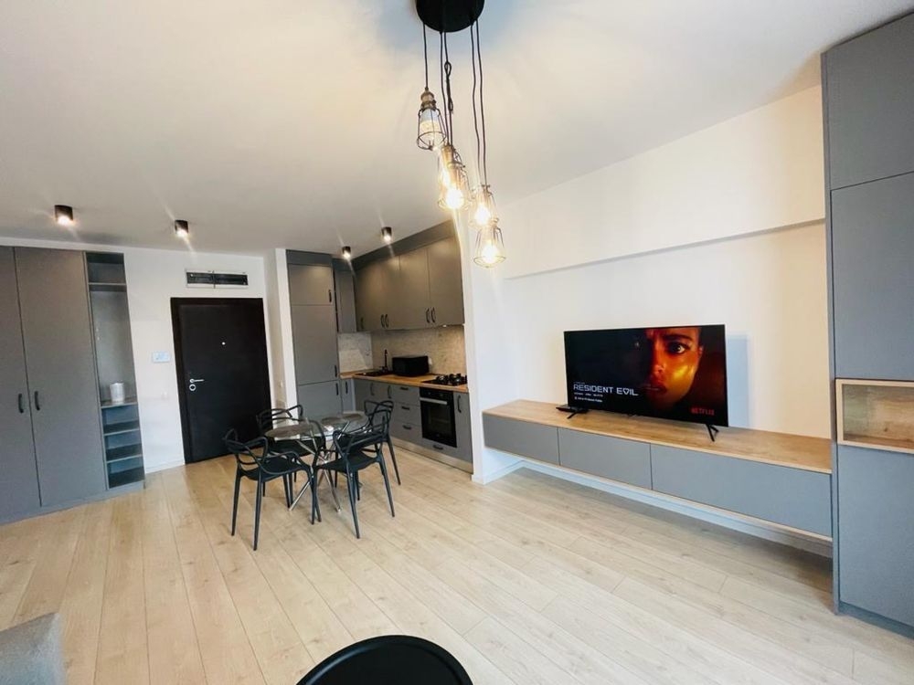 Apartamentul are o suprafata de aproximativ 50 mp si beneficiaza de o compartimentare eficienta, cu living si bucatarie open-space, oferind un spatiu aerisit si confortabil pentru locuire. Finisajele sunt de buna calitate, iar locuinta este complet mobilata cu mobilier Delta Studio, modern si functional.
