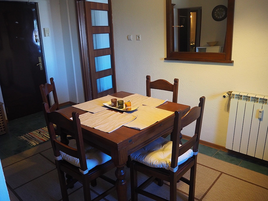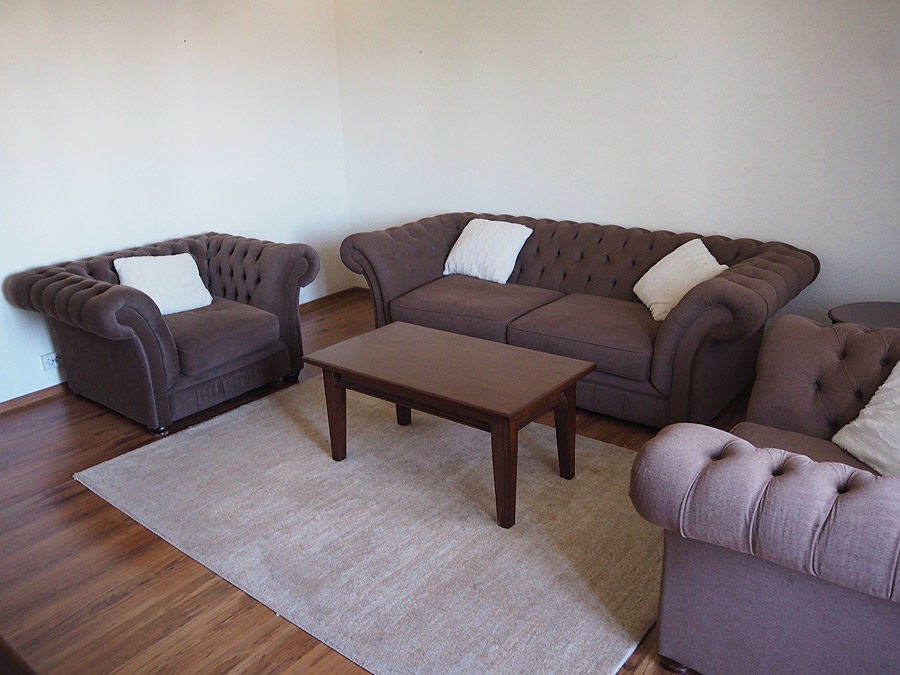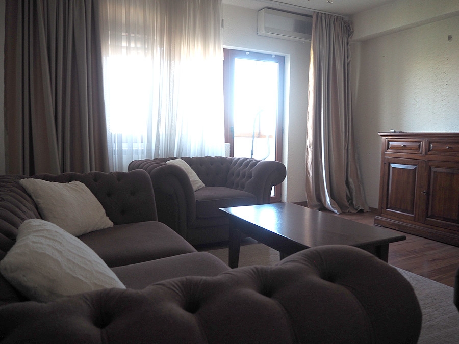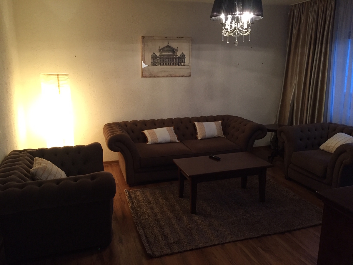 Mobilat si utilat complet, mobilier din lemn masiv pe comanda, canapea extensibila si fotolii din gama premium.