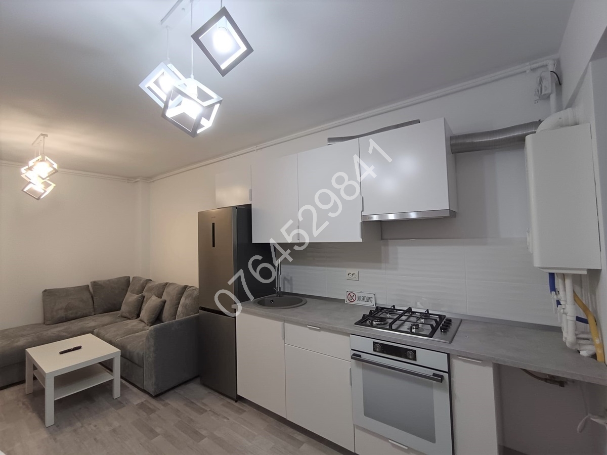 Balcon deschis,centrala termica (pe gaz) de apartament+termostat ambiental,televizor smart,canapea extensibila (XXXLutz) tip coltar in living,zona dining,pat matrimonial+dressing generos in dormitor,spatii depozitare,plita pe gaz+cuptor electric+hota incorporate,masina de spalat rufe,combina frigorifica.