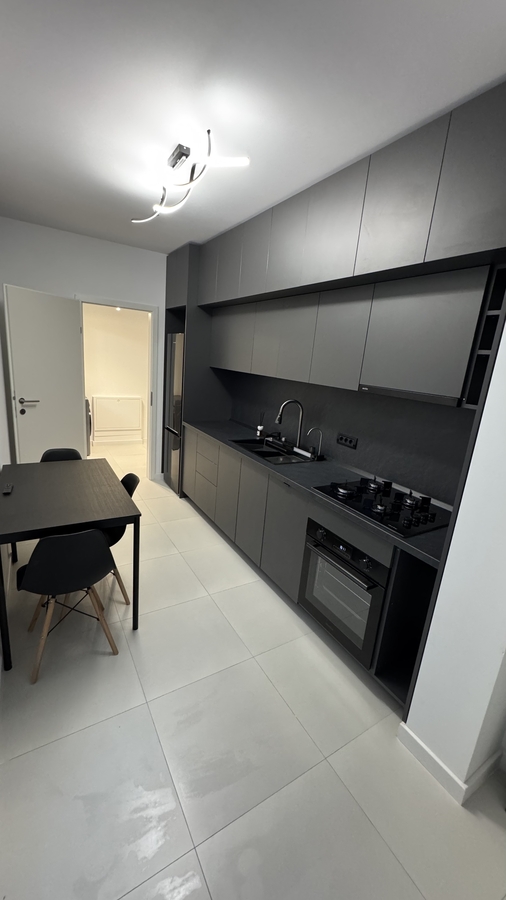 β’ π½ Bucatarie moderna, complet echipata: plita, cuptor, frigider, masina de spalat vase, hota, mobilier la comanda si acces direct la balcon