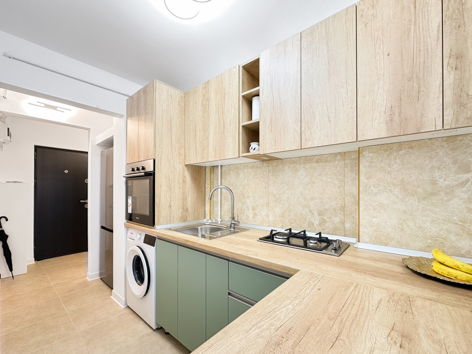 Apartamentul are tot ce isi poate dori cineva pentru a locui, exact ca in forografii. Este utilat complet cu plita pe gaz, cuptor electric, cuptor cu microunde, frigider, TV, aer conditionat, masina de spalat rufe etc.