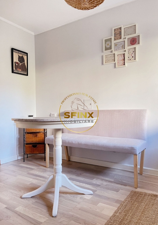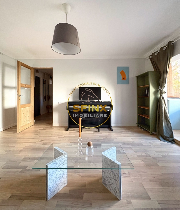 Este finisat si mobilat modern, dotat cu electrocasnice, dispune de centrala proprie pe gaz si aer conditionat. Pentru iubitorii de muzica, un pian electric completeaza acest apartament boem.