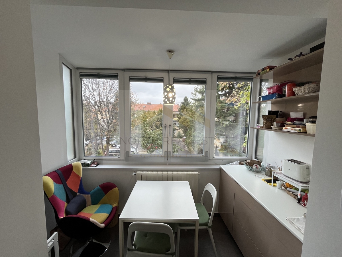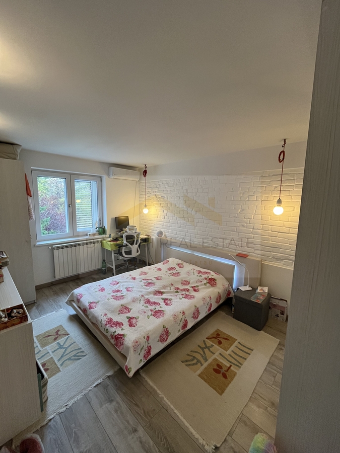 Proprietatea se afla intr-o pozitie retrasa si linistita, cu vedere catre gradina si zone verzi pe ambele parti, oferind o atmosfera placuta si relaxanta. Apartamentul a fost complet renovat, inclusiv instalatiile electrice si sanitare.