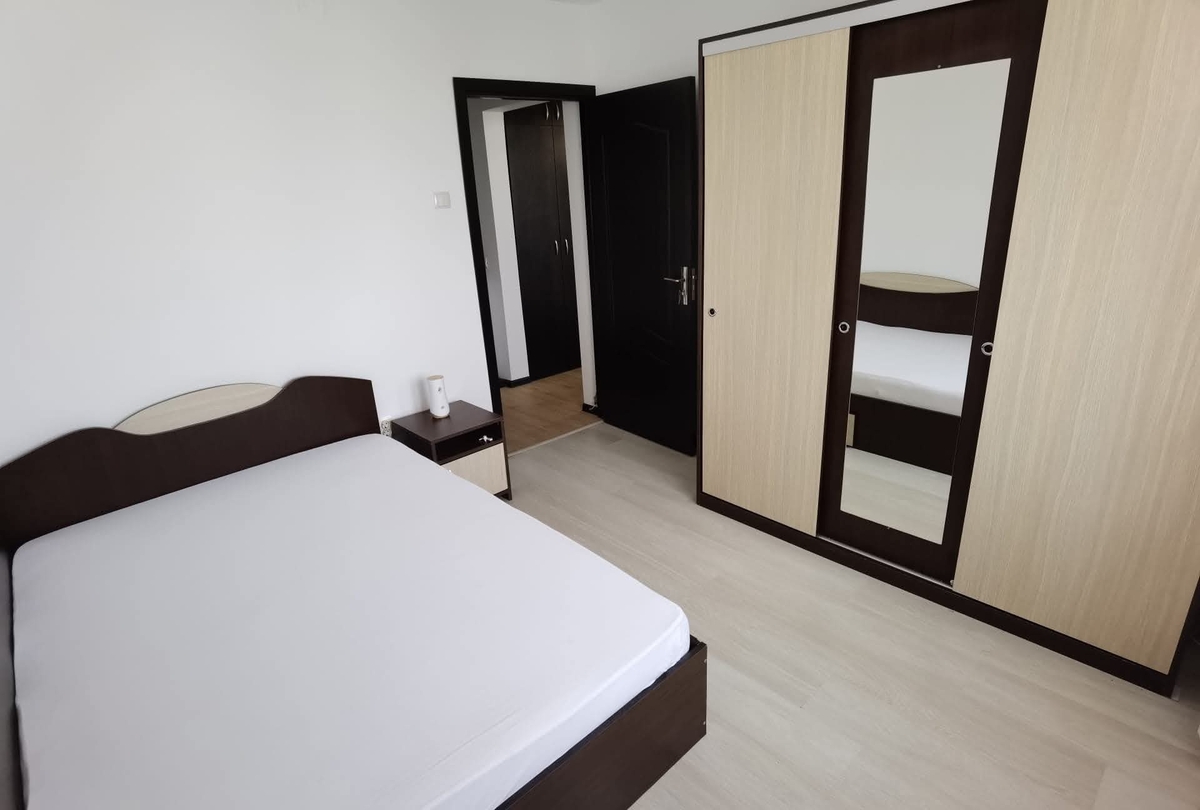 confort 1, decomandat, etaj 7/8, scoala nr. 311, str. 1 Mai, tramvai 41, troleibuzele 69, 90, 93 la 5 min,10-12 min. Metrou Favorit, mobilat si utilat modern (TV, aer conditionat, cuptor + plita, combina frigorifica, cuptor cu microunde, masina de spalat rufe). Nu se accepta animale de companie