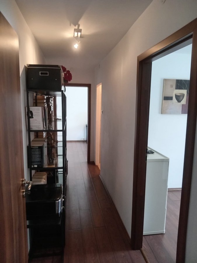 Apartamentul beneficiaza de finisaje de calitate: parchet, gresie, faianta, tamplarie termopan si aer conditionat. Blocul este curat, cu o scara ingrijita si vecini civilizati.