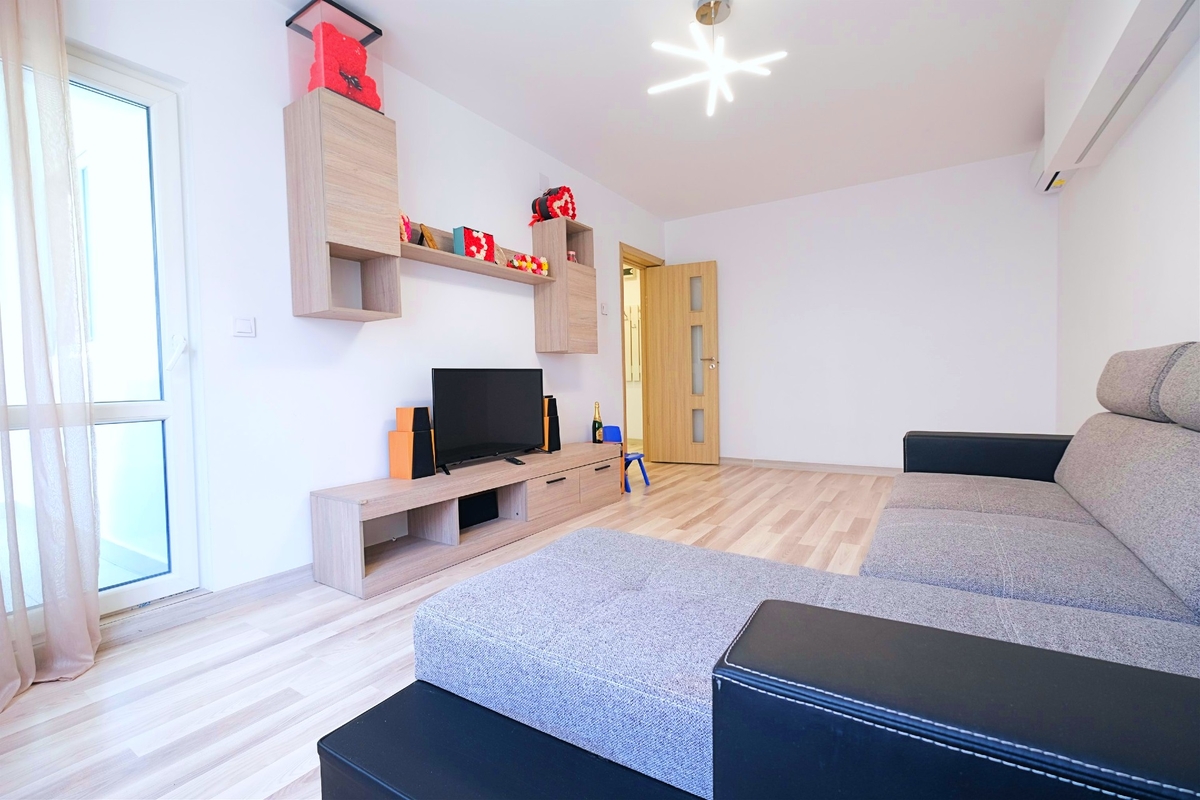 Locatie – apartamentul se afla in bloc pozitionat in zona de interes al cartierului, foarte aproape de: Scoli, Gradinite, Hipermarket-uri si Mega Image cu acces facil catre mijloacele de transport in comun din zona.