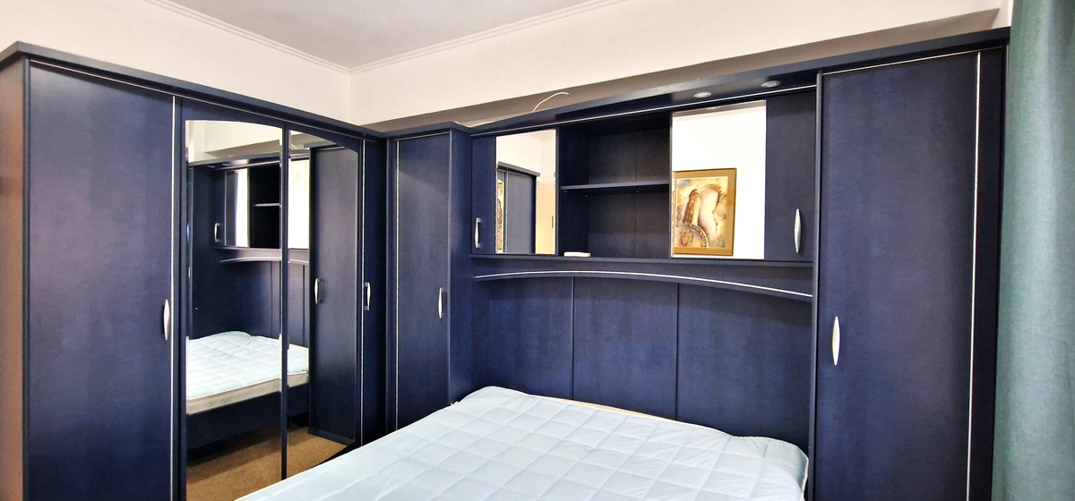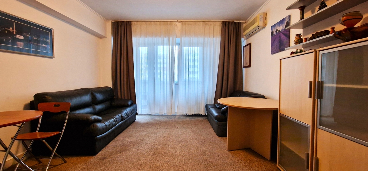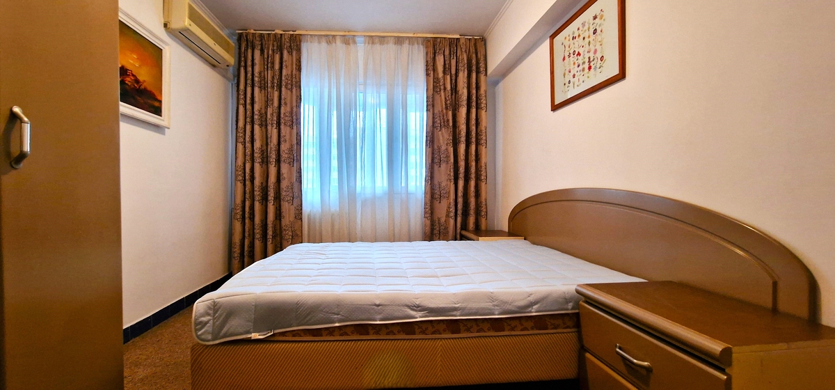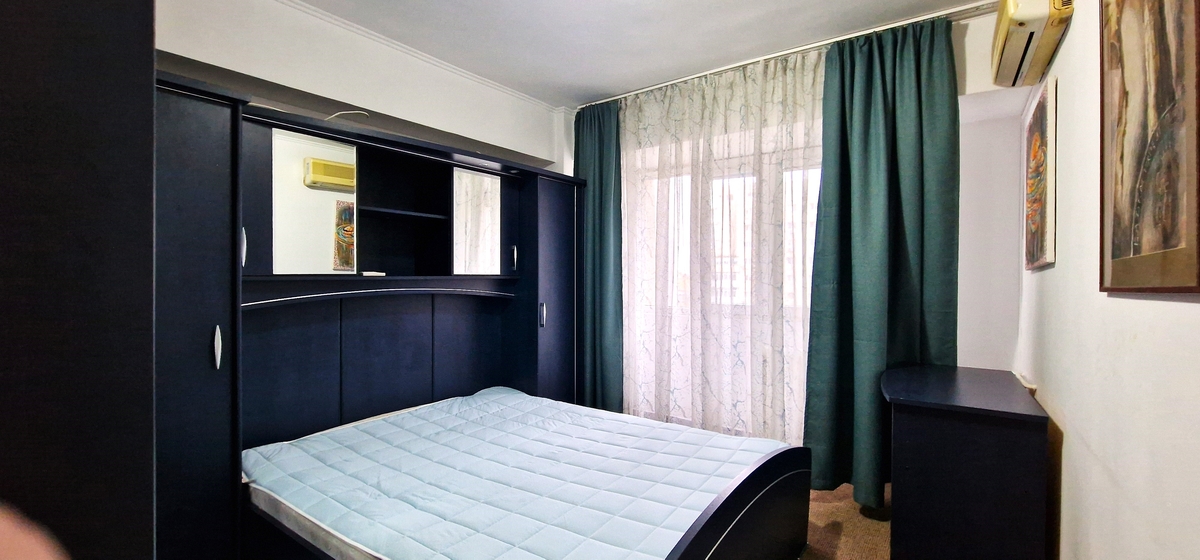 Apartamentul este mobilat complet, avand un living, 2 dormitoare, baie cu boiler, masina de spalat noua, bucatarie echipata cu frigider nou, aragaz, vesela, 2 debarale/spatii de depozitare, balcon mare cu vedere din toate camerele, AC. si TV.