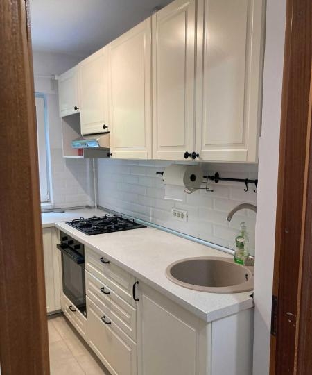 Apartament de 3 camere, etajul 1/10, anul 1980, suprafata 75mp, cu 2 balcoane inchise. Renovat in 2020 si beneficiaza de mobilier in bucatarie si baie mobilata. Este semidecomandat, cu o baie.