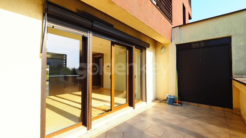 parter inalt 2 apartamente de 2 camere unite si modificate intr-un open space superb, 2 dormitoare, 1 birou, 1 bucatarie cu iesire balcon, 2 bai (cada + cabina dus), balcon stradal la est 11 mp/ terasa cu loc de luat masa vest 15 mp, incalzire pardoseala si calorifere, 2 aer conditionat 9000 btu, finisaje de lux pardoseala travertin , suprafata totala construita 206 mp, eficienta termica superioara, costuri mici la energie si gaze, apartamentele ocupa circa jumatate din suprafata totala construita a parterului inalt, bloc nou 2010, structura seismica solida certificata prin cartea imobilului, lift, zona verde linistita fara trafic auto intre soseaua Gh Ionescu Sisesti si lac Grivita, renovat complet, vecini de calitate, loc de parcare in exterior, chiria 1.200 eur / luna , garantie 1 Luna