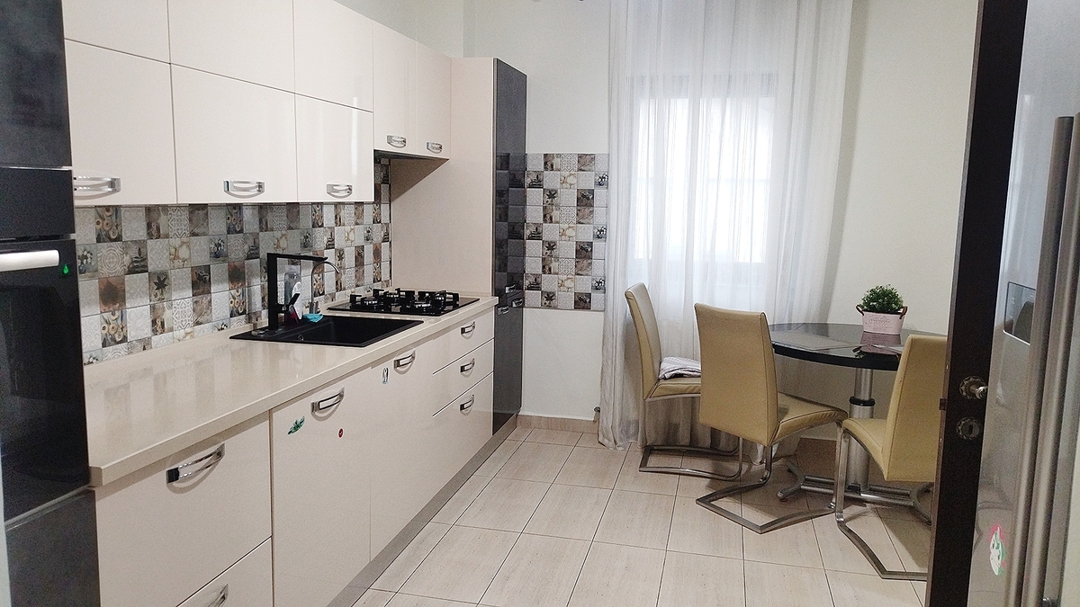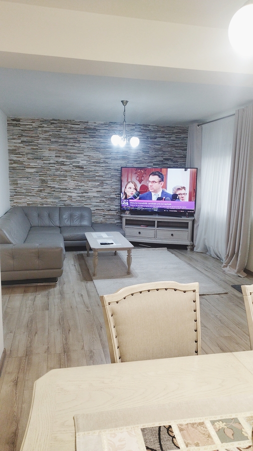 Suprafata 120 mp, renovata, mobilier Mobexpert, canapea Rovere piele naturala, electrocasnice lux, 2 gr. sanitare, bucatarie echipata complet, curte amenajata, terasa acoperita, gratar, mobilier gradina.