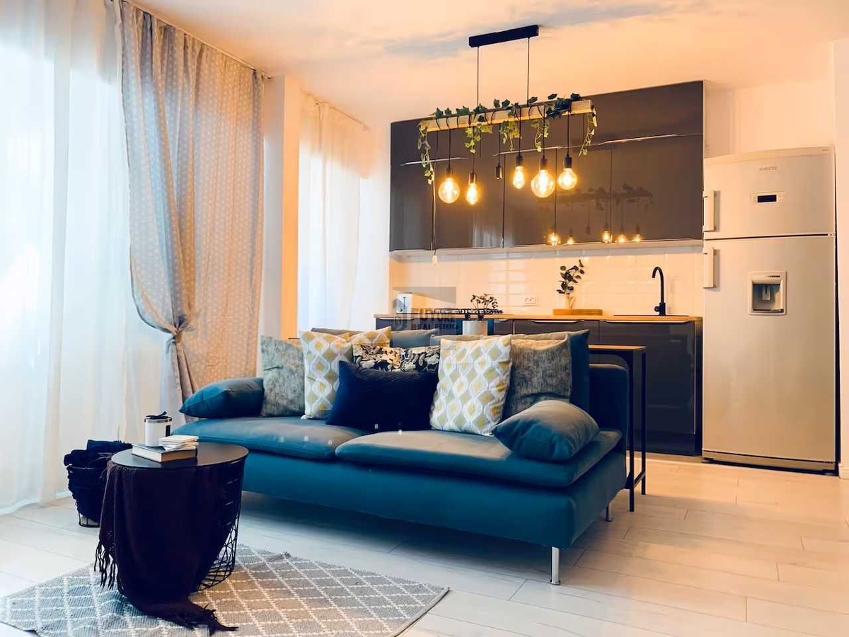 Garsoniera este desfasurata pe o suprafata de 40 mp si se ofera spre inchiriere complet mobilata si utilata (TV, aer conditionat, frigider, masina de spalat, plita, cuptor).