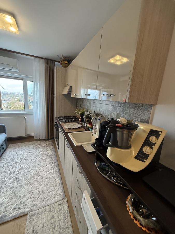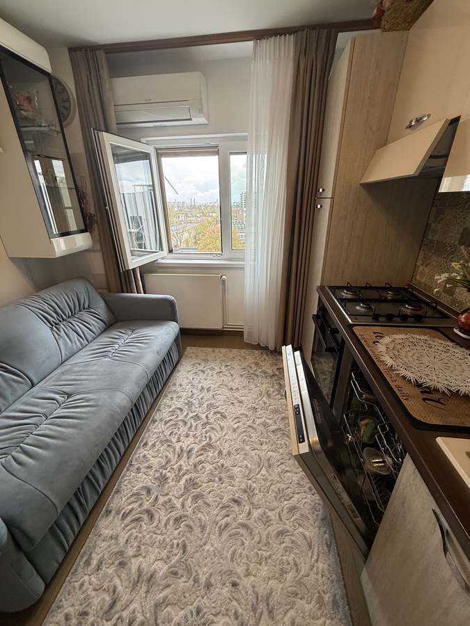 garsoniera superba, mobilata si utilata lux,centrala proprie, masina de spalat vase, aer cond, et 10, decomandata cu bucatarie mare separata,bloc izolat termic, termen lung, contract anaf